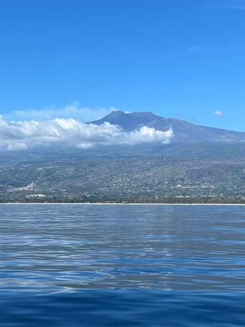 Der nächste Tag, Blick auf den Ätna (ohne die übliche Gipfelwolke) mit Leichtwind (MS und Code Zero, tw. Motor) weiter in die Bucht von Syrakus, so dass wir abends „Ortiga“, die Altstadt von Syrakus genießen konnten. Ein schöner Segeltag mit Spinnaker und Code Zero führte uns am nächsten Tag in 6 h nach Marzamemi, ein interessanter Ort, den man aber nicht in der Saison besuchen sollte.