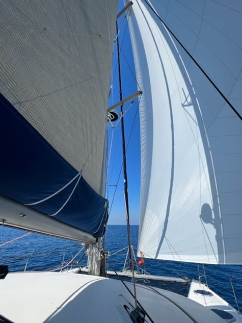 1. Reff, 2. Reff, 3. Reff, Genua gerefft, MS ganz weg….bis 12:30 ging der Spuk….Starkwind, kein Wind, reffen, ausreffen, 6 x 15 min Motor (da kein Wind war). Dann drehte der Wind auf W/NW 2 Beaufort, angenehmes Segeln mit Mainsail und Code Zero bis Tropea und die unangenehme kurze Welle war auch weg. Dies war insbesondere für den Skipper ein anstrengender Segeltag und das erste Mal, dass alle Wettermodelle von Predict Wind nicht zugetroffen haben.