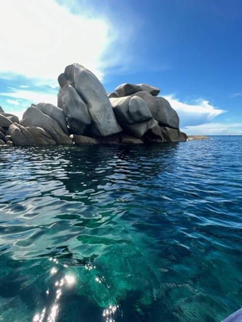 Besuch der Lavezzis mit dem Dinghi: Ein echtes Highlight, selbst mit dem Dinghi muss man aufpassen (Tiefe, Steine), das Wasser ist jedoch so klar, dass man jede Tiefe sieht.