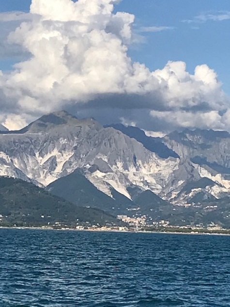 Am 02. September starteten wir zu den toskanischen Inseln. Auf dem Friedhof von Portovenere liegt Walter Bonatti, ein begnadeter Bergsteiger, der als Erster das Matterhorn über die Nordseite bezwang. Warum das Thema Berge: auf dem Weg zu den toskanischen Inseln kommt man an den Carrara Bergen vorbei (Apuanischen Alpan)...man denkt es liegt Schnee, sie schauen wild und massiv aus, erinnern einen an die Alpen.