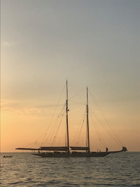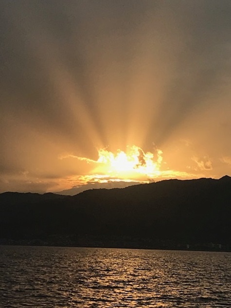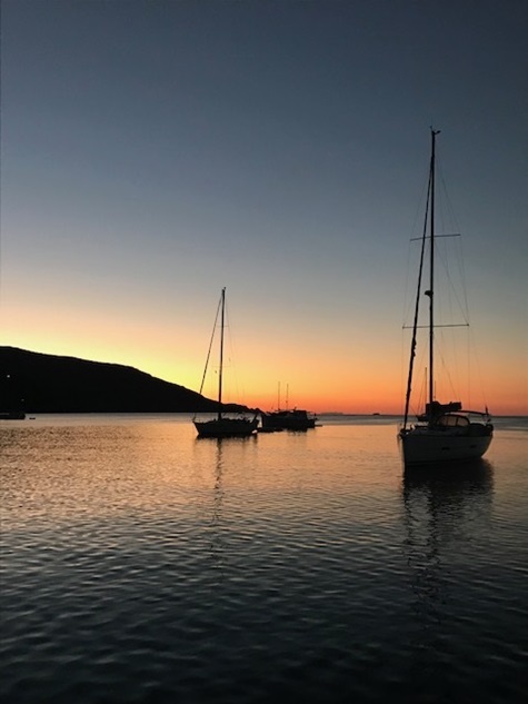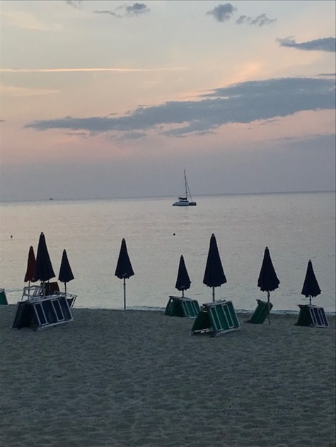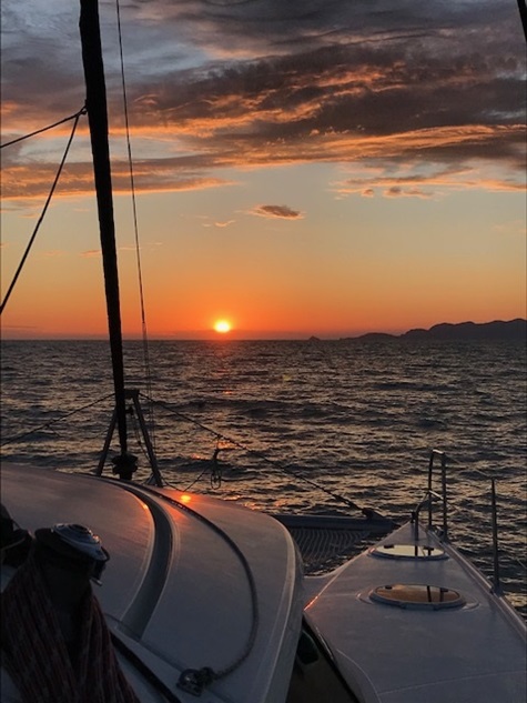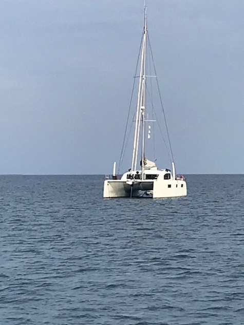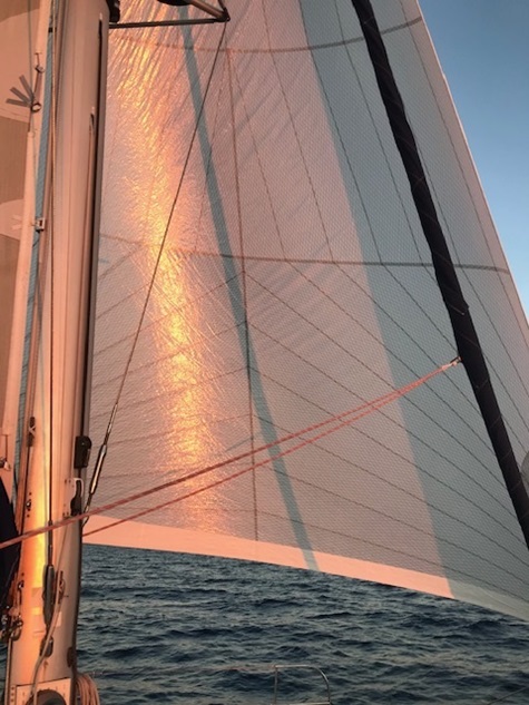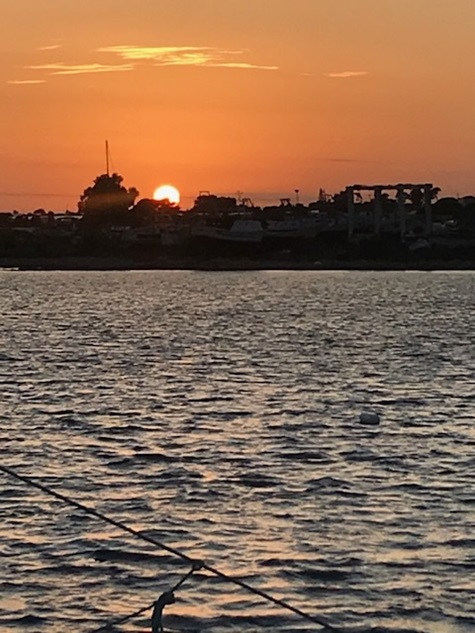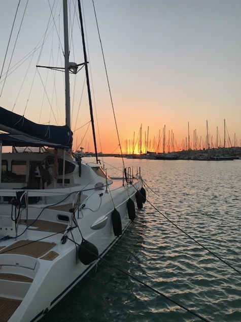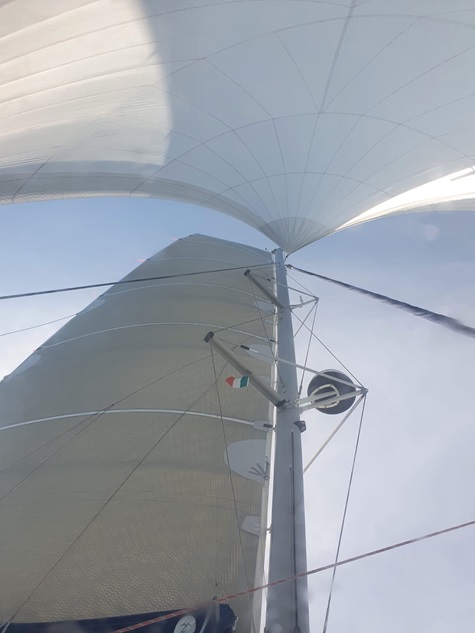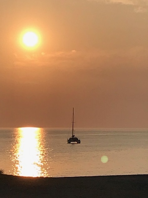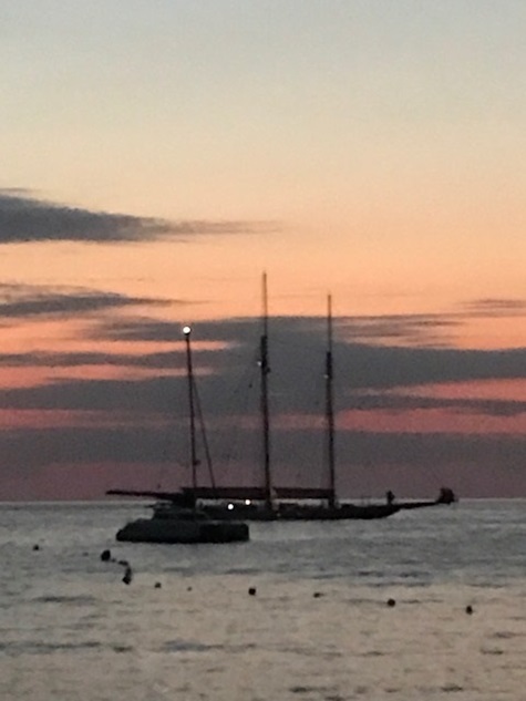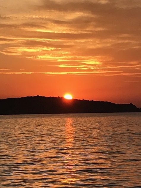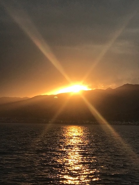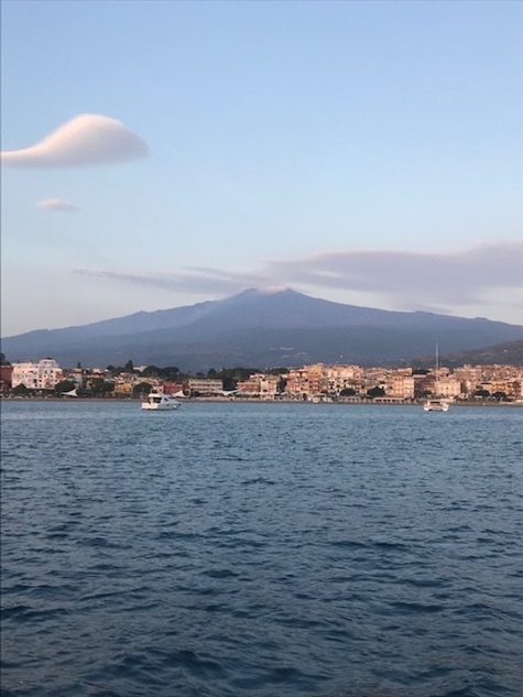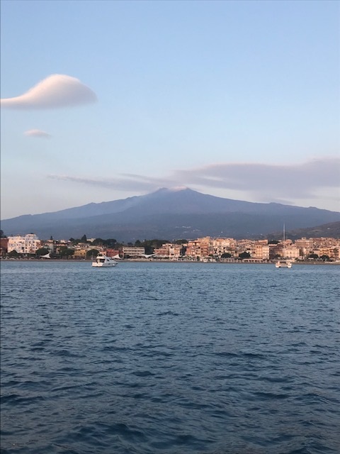 Jedoch war in der Straße von Messina alles anders: der Wind anders als vorhergesagt, die Strömung nicht so stark wie gedacht und nach Messina auch noch gegenan und keine Schwertfischboote. Dies hat uns bis Taormina, trotz Segel auch viel Diesel gekostet. Gewitter waren gegen Abend vor uns und hinter uns (hier mal Glück gehabt). Covid sei Dank, dass kein einziges Kreuzfahrtschiff in der Strasse war und auch sonst der Frachtverkehr gering war.