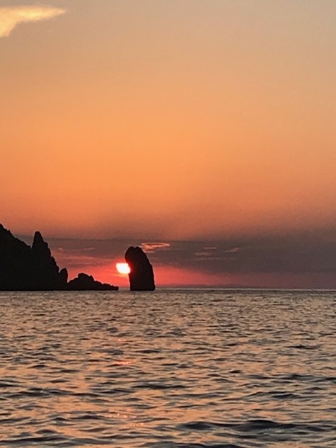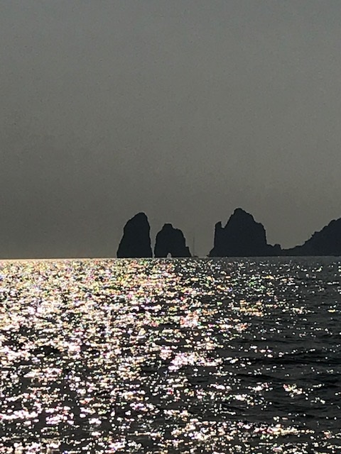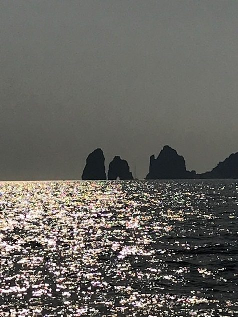Gegen Abend an Capri vorbei und dann (unbequemes, schwelliges) Ankern vor Scarpariello.