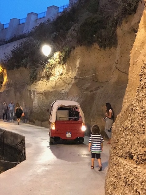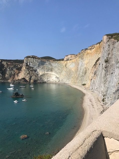 Die Inseln sind Überbleibsel versunkener Vulkane und wirken wie aus einer anderen Welt, die kleinen Städtchen sind pittoresk, das Wasser ist klar, Felsformationen und Strände wechseln sich ab. Bei den Römern waren die pontischen Inseln ein beliebtes Exil, um unbeliebte Dissidenten abzuschieben. Wir mieteten ein Scooter für 1 h, mehr war für die Inselrundfahrt in Ponza nicht nötig, an viele Strände kommt man nur mit dem Boot.