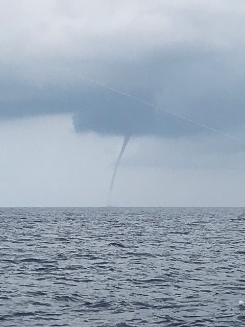 Von Cetraro nach Tropea hatten wir ein Wetterphänomen, welches ein Segler nicht braucht. Das Wetter ist dunstig, schwül, bedeckt und gewittrig. Gegen 11:00 bemerkten wir nördlich von uns eine Wasserhose, wir bergen direkt alle Segel. Wir haben Glück, nach 20 min ist die Wasserhose verschwunden.